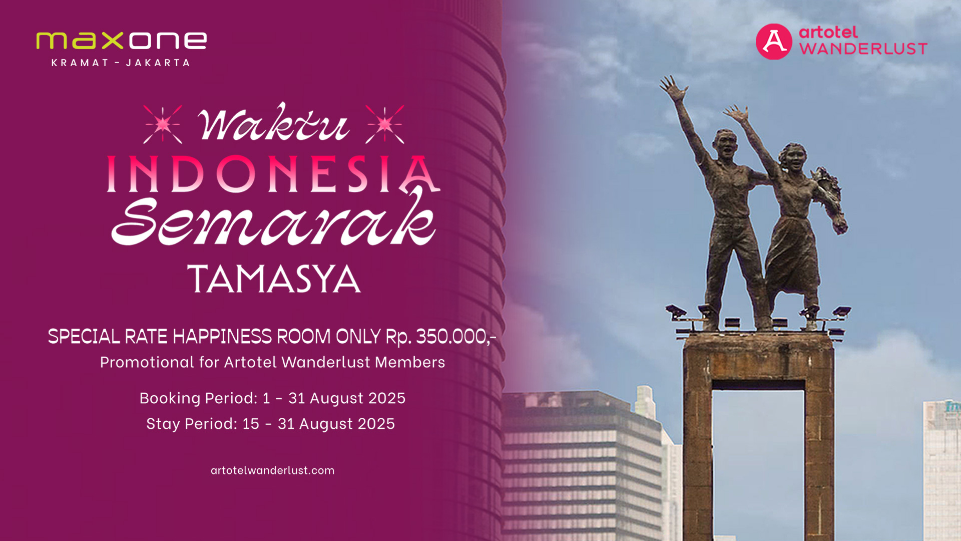 Bagi masyarakat yang ingin merayakan kemerdekaan dengan cara berbeda — baik karena bernama AGUS atau sebagai member Wanderlust — Maxone Hotel Kramat menawarkan pilihan yang tidak boleh dilewatkan.